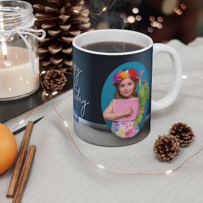 Make their birthday unforgettable with this colorful mug, customized with the birthday person’s image. Gelato printing ensures sharp, vibrant colors that last for years. The durable ceramic mug is perfect for hot beverages, and can be further personalized with names or a special message to create a unique keepsake.